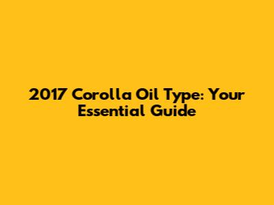 2017 Corolla Oil Type: Your Essential Guide