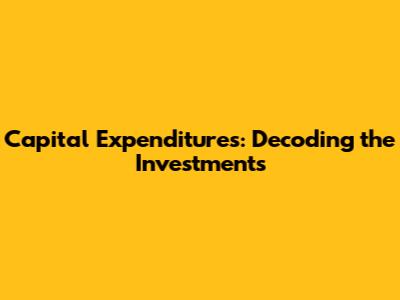 Capital Expenditures: Decoding The Investments
