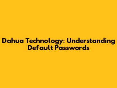 Dahua Technology: Understanding Default Passwords