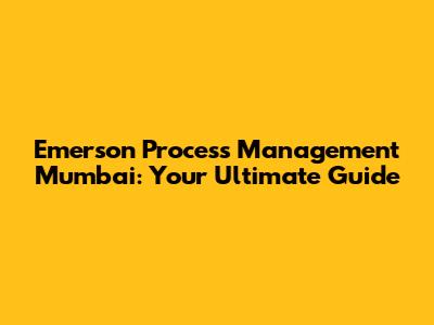 Emerson Process Management Mumbai: Your Comprehensive Guide