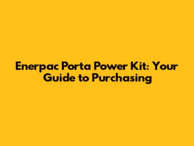 Enerpac Porta Power Kit: Your Guide To Purchasing