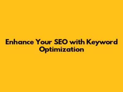 Enhance Your SEO With Keyword Optimization