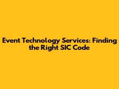 Navigating the world of event technology services can be complex, especially when it comes to classifying your business using the Standard Industrial Classification (SIC) system. Understanding the correct SIC code is crucial for various reasons, including business registration, market research, and securing funding. This article will guide you through the process of identifying the appropriate SIC code for your event technology service company, ensuring you're accurately categorized and positioned for success.