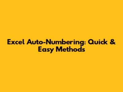 Excel Auto-Numbering: Quick & Easy Methods