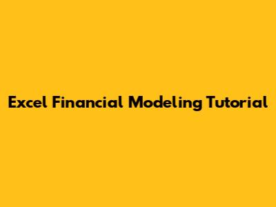 Excel Financial Modeling: A Practical Tutorial