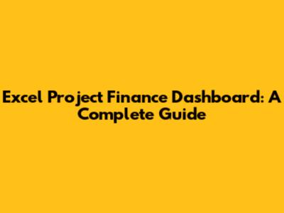 Excel Project Finance Dashboard: A Complete Guide