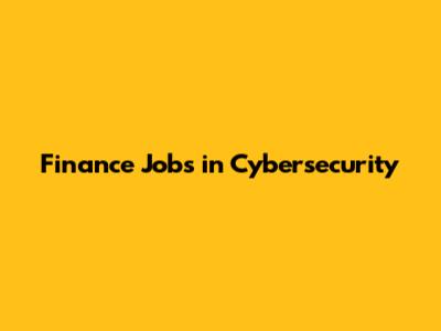 Finance Jobs In Cybersecurity