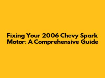 Fixing Your 2006 Chevy Spark Motor: A Comprehensive Guide
