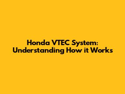 Honda VTEC System: Understanding How It Works