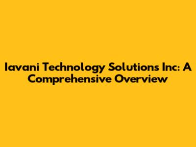 Let's dive into Iavani Technology Solutions Inc, a company making waves in the tech world. This article provides a detailed look at what Iavani Technology Solutions does, its services, and its impact on the industry. Whether you're a potential client, a tech enthusiast, or just curious, this comprehensive overview will give you a solid understanding of Iavani Technology Solutions Inc. Guys, get ready to explore the ins and outs of this innovative company and see what sets them apart from the competition.