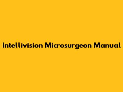Intellivision Microsurgeon: A Detailed Manual