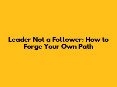 Leader Not A Follower: How To Forge Your Own Path
