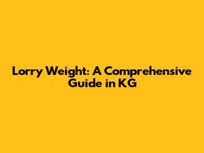 Lorry Weight: A Comprehensive Guide In KG
