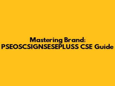 Mastering Brand: PSEOSCSIGNSESEPLUSS CSE Guide