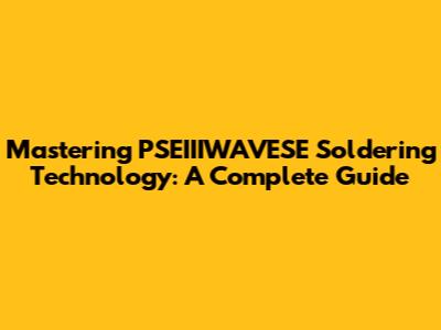 Mastering PSEIIIWAVESE Soldering Technology: A Complete Guide