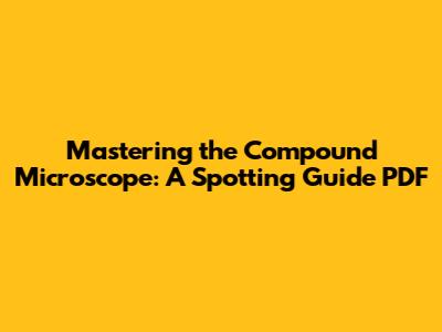 Mastering The Compound Microscope: A Spotting Guide PDF