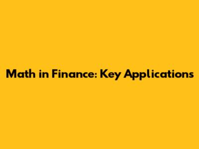 Math In Finance: Key Applications