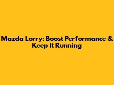 Mazda Lorry: Boost Performance & Keep It Running