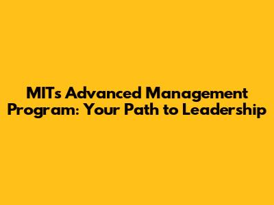 MIT's Advanced Management Program: Your Path To Leadership