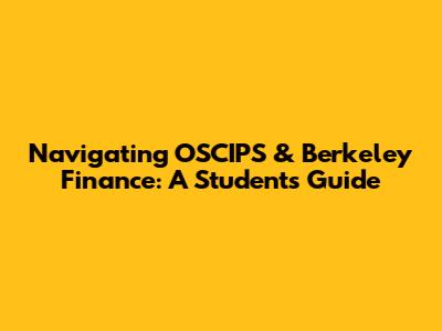Navigating OSCIPS & Berkeley Finance: A Student's Guide