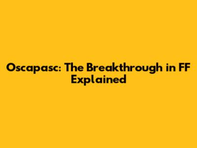 Oscapasc: The Breakthrough In FF Explained
