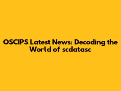 OSCIPS Latest News: Decoding The World Of Scdatasc
