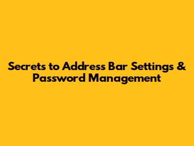 Secrets To Address Bar Settings & Password Management