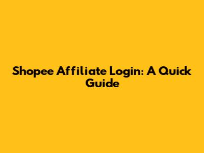 Shopee Affiliate Login: A Quick Guide