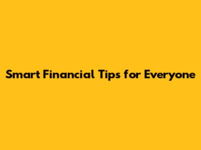 Smart Financial Tips For Everyone