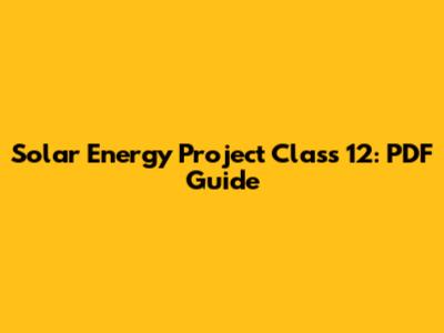 Solar Energy Project Class 12: PDF Guide