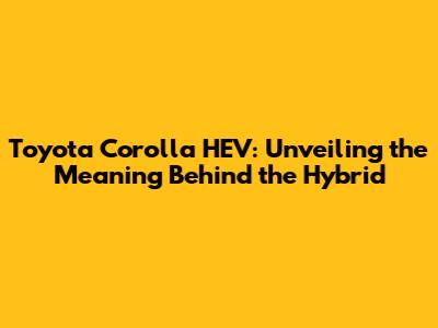 Toyota Corolla HEV: What Does It Mean?