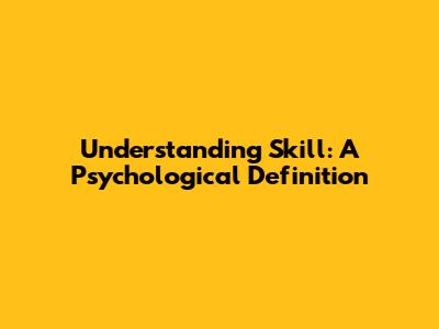 Understanding Skill: A Psychological Definition