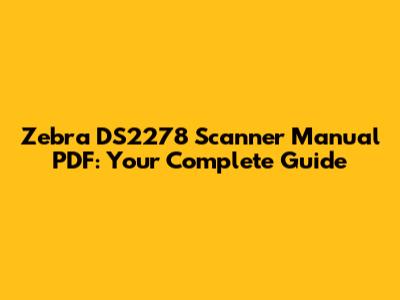 Zebra DS2278 Scanner Manual PDF: Your Complete Guide